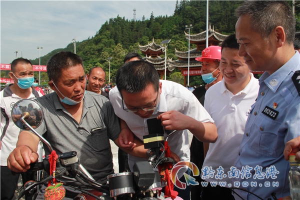 儀式上,黔東南州公安局交警支隊(duì)科技科科長(zhǎng)楊漢權(quán)介紹了摩托車防酒駕控制系統(tǒng)安裝的目的和意義,三穗縣公安局交警大隊(duì)大隊(duì)長(zhǎng)袁安剛帶領(lǐng)全體摩托車駕駛?cè)俗骶芙^酒駕宣誓,款場(chǎng)鄉(xiāng)黨委書記楊麗、縣人大副主任劉開宙分別作講話,黔東南州公安局交警支隊(duì)三級(jí)高級(jí)警長(zhǎng)黃銳宣布摩托車防酒駕控制系統(tǒng)試點(diǎn)應(yīng)用正式啟動(dòng)。緊接著,全體人員在拒絕酒駕宣傳欄上簽名,觀看了交通事故案例展板,現(xiàn)場(chǎng)安裝“防酒駕控制系統(tǒng)”。