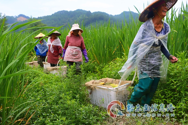 “目前每天的采摘人數有20余人,每天的采收量在1000斤左右,通過包裝后,全部銷往廣西、廣東、福建等地。”基地負責人唐榮福介紹說,今年吉洞村的茭白長勢很好,每畝產量4000斤左右,每畝產值近6000元,預估每畝凈收益在3000元,年收益120萬元左右。