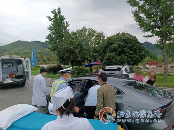 病情就是命令,時間就是生命。民警立即向大隊領導匯報,同時報告支隊指揮中心救助警情,民警當前所處位置,前往救治醫院,請調度凱里市交警大隊沿途做好城區道路保暢工作。同時幫助聯系好急救醫生做好救治相關準備,一場為生命開道與死神賽跑的合力救助迅速展開,民警示意患者乘坐車輛打開雙閃緊隨開道警車,警燈閃爍,警笛齊鳴,一路向北疾馳,15時50分,短短20余分鐘,40公里的高速、城市混合道路,四大隊民警帶領車輛快速前行,一路護送至四一八醫院,并協助醫護人員將患者送進急救室,為病人急救贏得了最為寶貴的搶救時間。