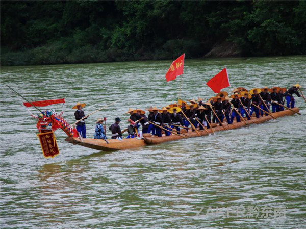 接龍儀式現場,一只只獨木龍舟從沿河各村寨劃來,來自清水江沿岸村寨的苗族群眾也身著節日盛裝,齊聚塘龍寨清水江岸,共度一年一度的傳統節日 " 獨木龍舟節 ",各村寨姑媽們紛紛鳴炮迎接龍舟,獻掛錦旗,獻贈鴨鵝甚至肥豬,以示良好祝愿,一時間鞭炮齊鳴,鑼鼓喧天,節日規模盛大,氣氛濃烈獨特。