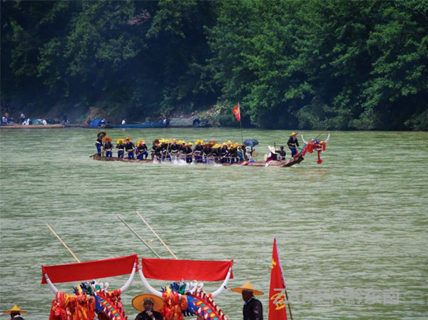 百舸爭流千帆競 ,借海揚帆奮者先。激烈的龍舟競渡比賽現場,各村寨一一進行比拼,鼓聲、鑼聲、歡呼聲不絕于耳,遼闊的河面上,龍舟疾馳而過,舟槳濺起的片片水花讓兩岸的觀眾熱血沸騰。