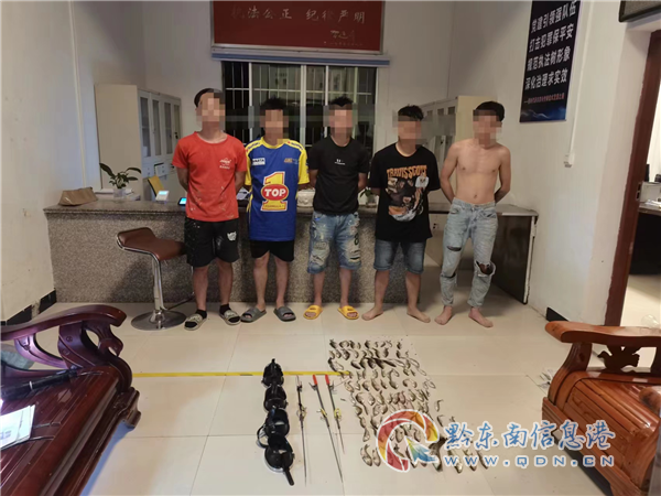 8月1日凌晨1時許,臺江縣公安局老屯派出所在巴拉河開展巡查時,發現五名男子潛在河中并不時將河魚放在網兜,民警立即上前將五名男子控制,當場扣押凈重3公斤河魚,查獲“射魚槍”3支,水下護目鏡4副。經訊問,李某騰等五人對使用“射魚槍”非法捕撈水產品的事實供認不諱。
