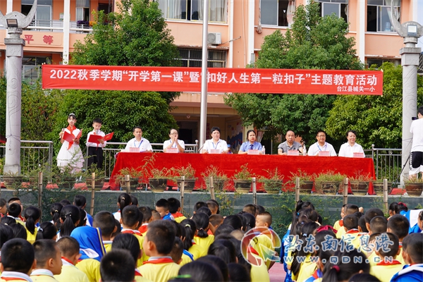 臺江縣城關一小2022年秋季學期開學典禮上。9月2日上午9時,臺江縣城關一小在學校操場舉行了2022秋季學期“開學第一課”暨“扣好人生第一粒扣子”主題教育活動和臺江縣城關一小2022年秋季學期開學典禮暨表彰大會。