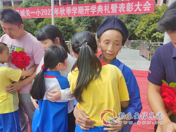 臺江縣城關一小上一屆優秀畢業生廖江萍同學擁抱著媽媽,媽媽高興的擦拭著喜悅的淚花。