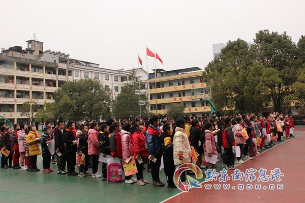 活動中,學校黨支部書記、關工委主任廖懿華向參加活動的的同學們表示歡迎,為同學們送上新年寄語,希望同學們學會自立自強,勤奮認真學習,積極向上,爭做新時代好少年。隨后,關工委成員為全校239名留守、困境未成年人發書包、作業本等文具用品和酸奶飲料新年禮物。同時,還為學習積極、表現良好的同學頒發了獎狀,并向6名特困學生發放了每人200元的慰問金。孩子們領到禮物時,臉上洋溢著幸福和喜悅,親身感受到了來自學校大家庭的溫暖與老師的關愛。
