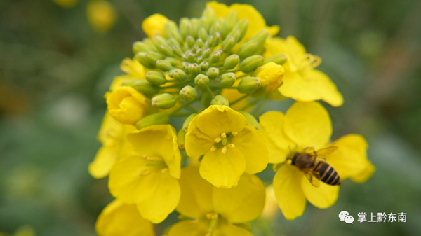 從遠處忘去,淡黃色的油菜花錯落有致的散落田野間,像陽光照耀在田野間,為田野穿上金色的新裝。走進油菜花海,金燦燦的油菜花一望無際,在微風的吹拂下連綿起伏,空氣中彌漫著陣陣油菜花的清香。成群蜜蜂在花間飛舞采蜜,宛如一首春天的交響樂。