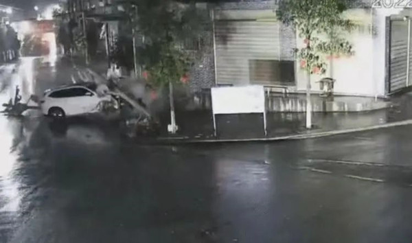 (兩棵電桿被撞倒)