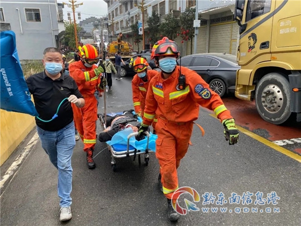 經過20多分鐘的緊張救援,被困人員最終被成功救出,消防救援人員立即將被困人員送往醫院搶救。(曾晨成 )