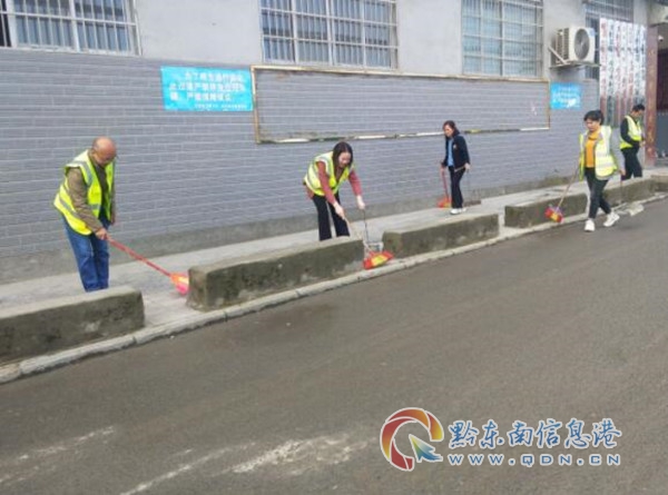 活動中,“天柱一小護學崗”分頭來到鳳城街道西門社區的三岔路口、友誼巷、西門路邊水井等責任路段。一路上,大家一邊清理溝渠障礙物、送路面雜物“回家”、清除背街小巷“野廣告”,并對不文明交通行為進行勸導;一邊對周邊居民進行養成良好衛生習慣常識的宣傳,呼吁廣大居民增強環保意識,形成除陋習、樹新風的文明風尚。