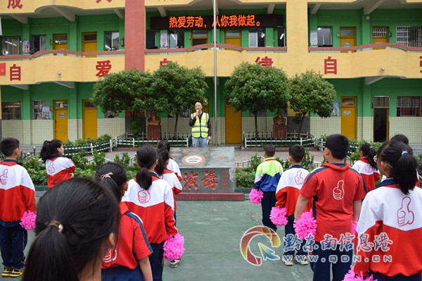 據悉,天柱縣第一小學黨支部、大隊部、關工委從校情出發,結合“雙減”政策及當地的學生的實際,通過電子顯示屏、微信等載體,營造“勞動光榮”的良好社會氛圍;利用“國旗下講話”、主題班會等講述了勞動的意義,并用勞模工匠精神激勵孩子們;依托校內外各類勞動為抓手,培養學生的社會責任感。