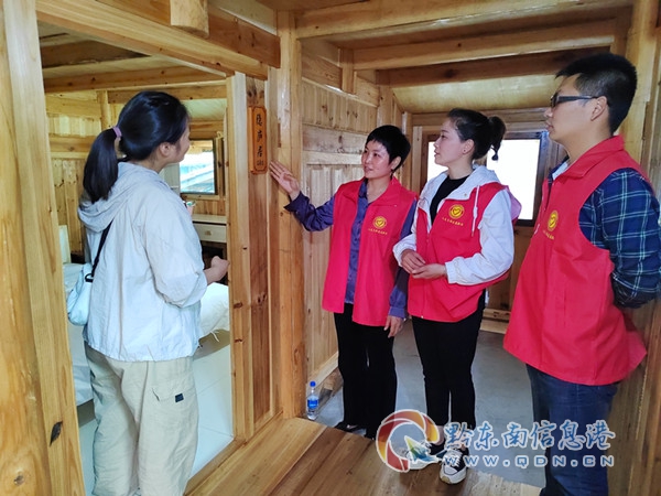 圖為天柱縣坌處鎮三門塘村鄉村振興第一書記和工作隊員入戶指導民宿建設