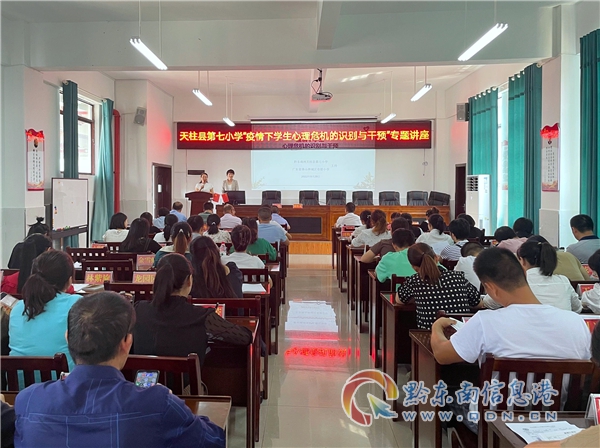 天柱縣第七小學的防控疫情工作,王老師為切實提高第七小學全體教職工心理健康教育工作意識和能力,帶領全體教職員工深入學習掌握心理危機干預基本知識與技能,以增強對學生心理應激反應的敏感度,9月28日,王老師在學校四樓會議室作《疫情下學生心理危機的識別與干預》的專題講座,全校教職工參加了此次培訓。