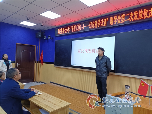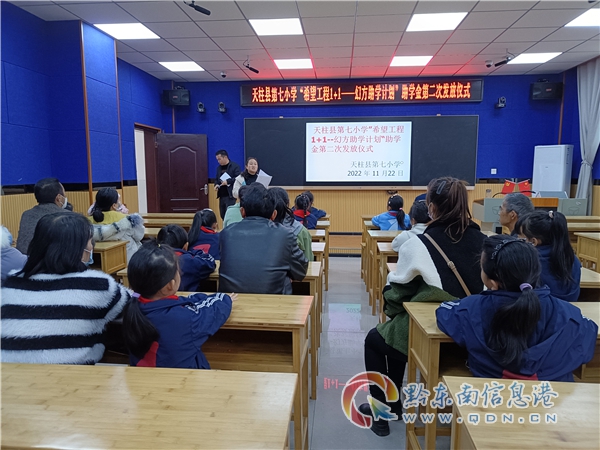天柱縣第七小學在學校錄播室組織開展了“希望工程1+1——幻方助學計劃”助學金第二次現場發放儀式。