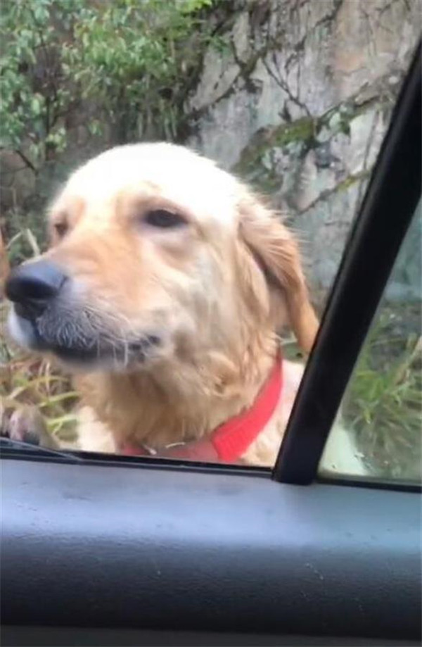 金毛犬趴在車窗上不肯離去(視頻截圖)