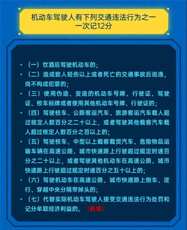 ● 新:代替實際機動車駕駛人接受交通違法行為處罰和記分牟取經濟利益的(12分)