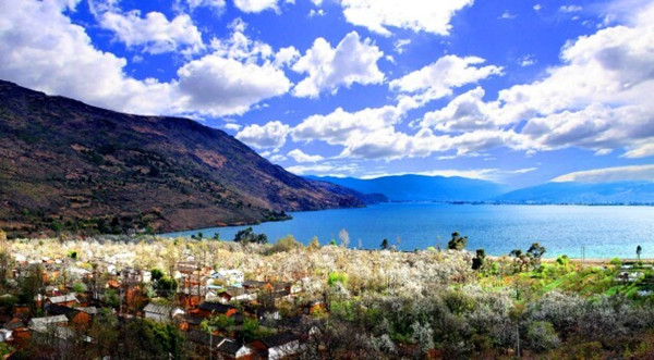 每年梨花盛開(kāi)之時(shí),似“白雪漫漫”,與茈碧湖的清澈湖水形成一幅完美畫(huà)卷。