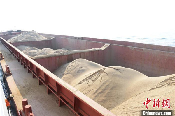 福建泉州海警連續查獲兩起涉嫌非法盜采海砂案。圖為查獲的非法海砂。 鄧建榮 攝