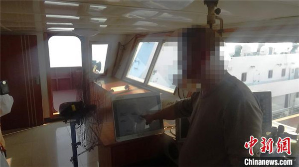 福建泉州海警連續查獲兩起涉嫌非法盜采海砂案。圖為嫌疑人指認現場。 鄧建榮 攝