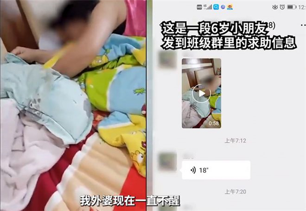 “老師老師,我外婆叫不醒,她在床上滾來滾去,一直在吐白沫。”當天早上7時2分,珂兒將拍下的視頻發送到班級群里,并發送語音信息向老師求助。