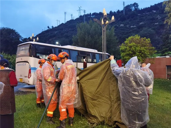 6月10日,馬爾康市,四川森林消防為受災群眾搭建帳篷。