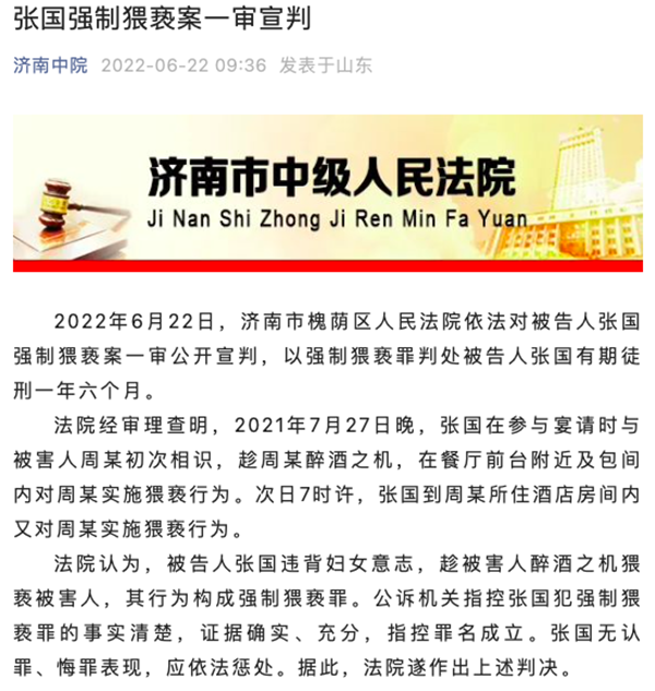 法院經審理查明,2021年7月27日晚,張國在參與宴請時與被害人周某初次相識,趁周某醉酒之機,在餐廳前臺附近及包間內對周某實施猥褻行為。次日7時許,張國到周某所住酒店房間內又對周某實施猥褻行為。