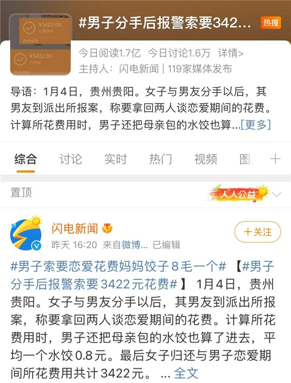 稱要拿回兩人談戀愛(ài)期間的花費(fèi)。