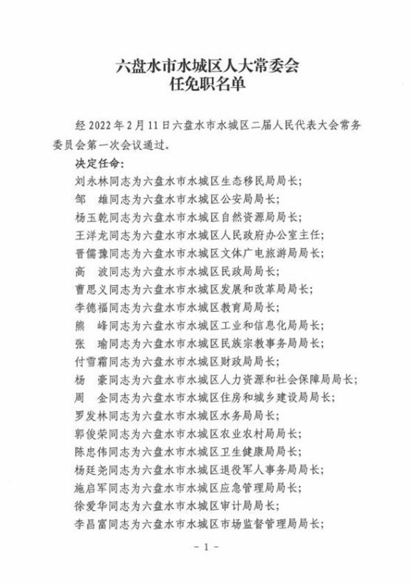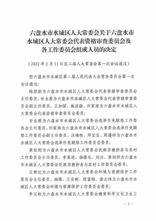 2月11日,六盤水市水城區人大常委會發布公告,具體情況如下↓↓↓