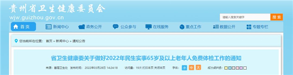 省委、省政府高度重視民生保障工作和人民群眾關心關切的衛生健康工作,為深入貫徹實施貴州省整體提升衛生健康水平攻堅行動計劃,2022年再次將為全省65歲及以上老年人免費體檢一次列入我省十件民生實事。為全力做好老年人體檢工作,確保取得預期成效,現就有關事宜通知如下: