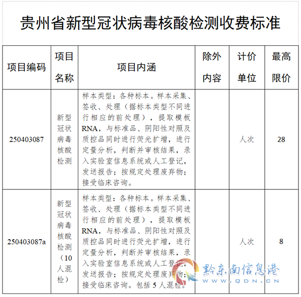 附件:貴州省新型冠狀病毒核酸檢測(cè)收費(fèi)標(biāo)準(zhǔn)