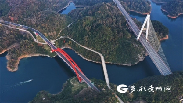 G320線花魚洞大橋位于貴陽至黃果樹高等級公路清鎮市內,跨越紅楓湖,是貴州首座“提籃”式公路橋梁。全長270米,于2019年2月20日開工,2021年6月29日建成通車。先后獲得11項國家專利技術、1項省級工法,尤其是全國首創的“邊建邊拆”的改建方式,成為山區橋梁改建的典范。