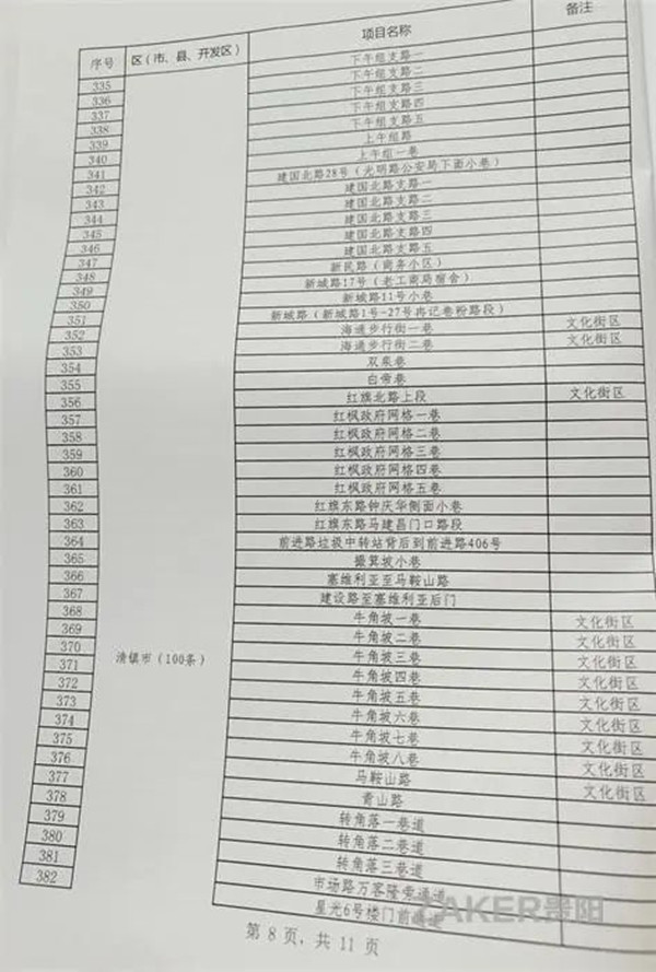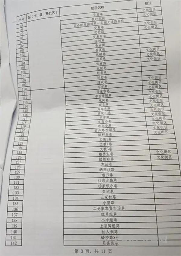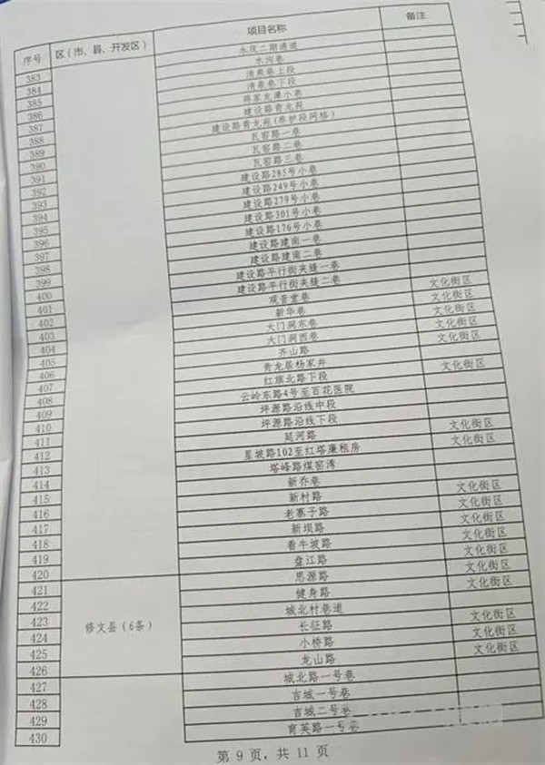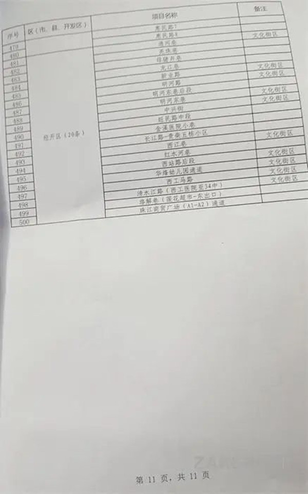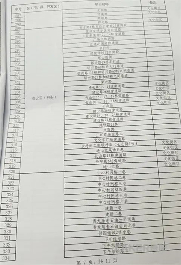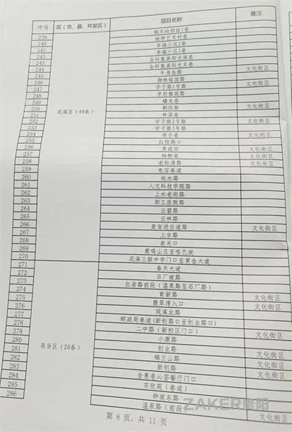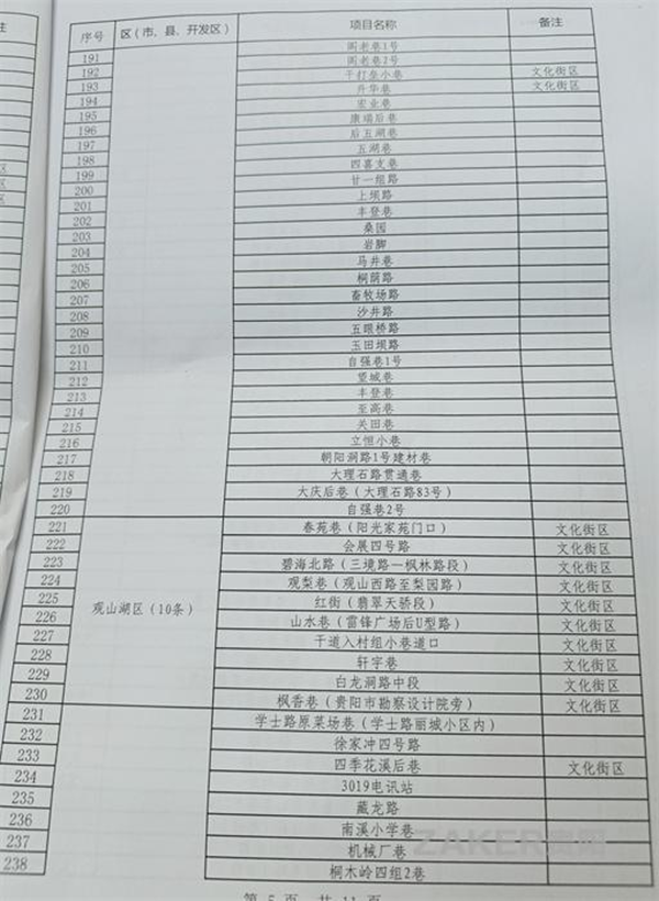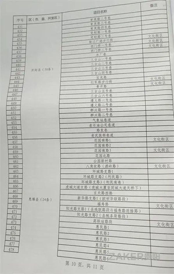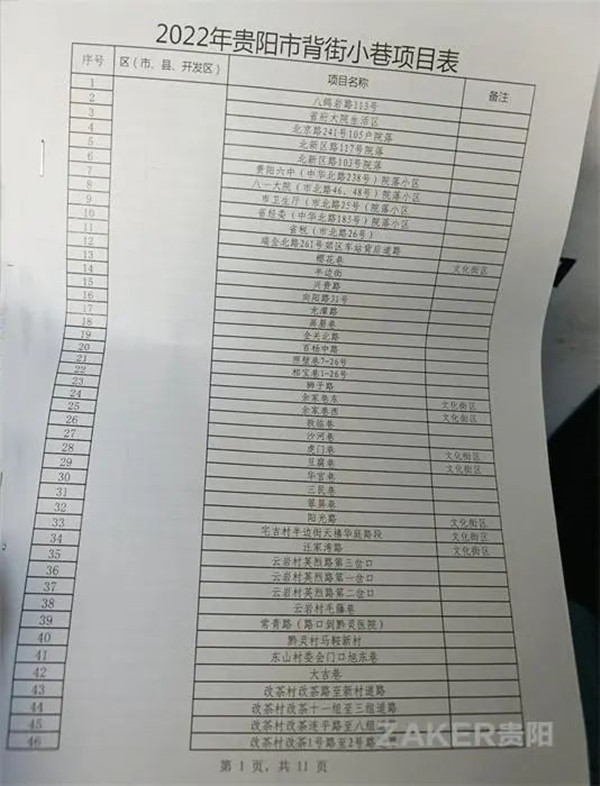 2022年貴陽市背街小巷項目表(500條)
