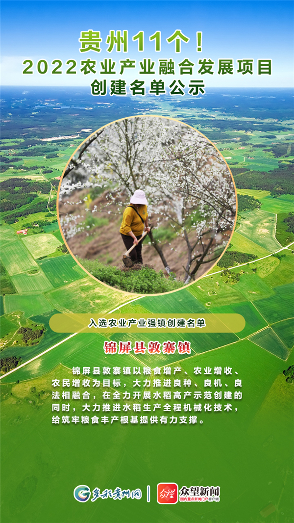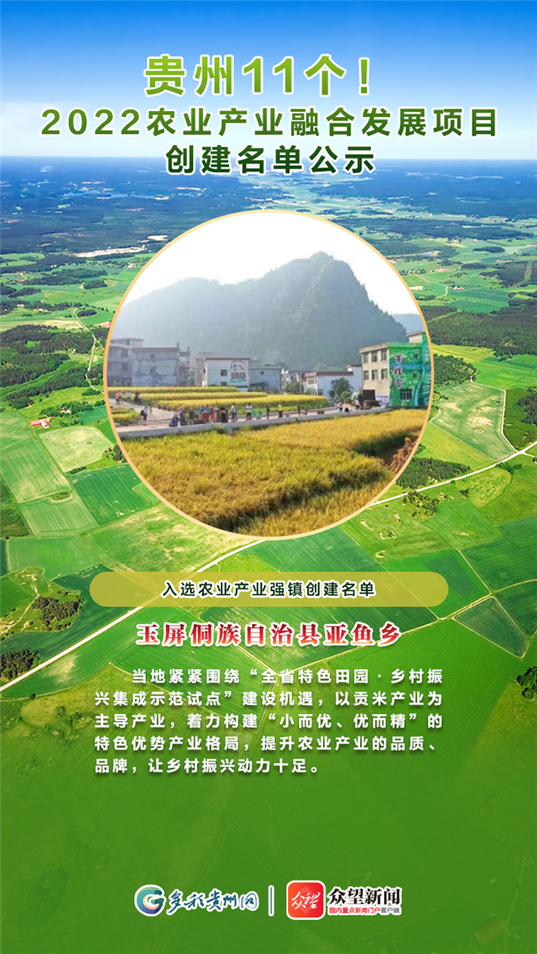近日,農業農村部辦公廳、財政部辦公廳公布2022年農業產業融合發展項目創建名單。貴州省11地分別入選名單,一起來看看吧。