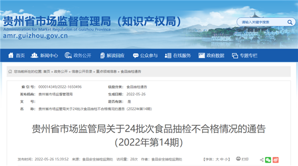 對抽檢發現的不合格食品,貴州省市場監管局已責成屬地市場監管部門立即組織開展核查處置,查清產品流向,督促企業采取下架、召回不合格產品等措施控制風險;對違法違規行為,依法及時處理;同時將采取的風險防控措施和核查處置情況向社會公開,并向省局報告。