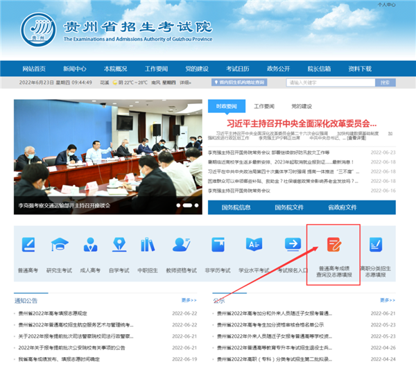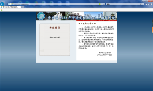貴州省2022年普通高校招生志愿填報系統