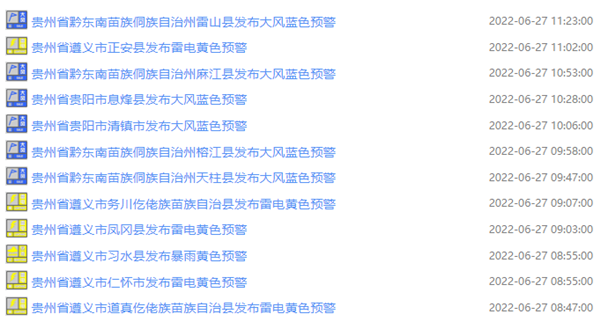 今天(6月27日)上午,貴州多地發(fā)布預(yù)警信息↓↓