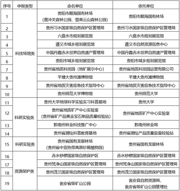 貴州省第一批自然資源科普基地名單