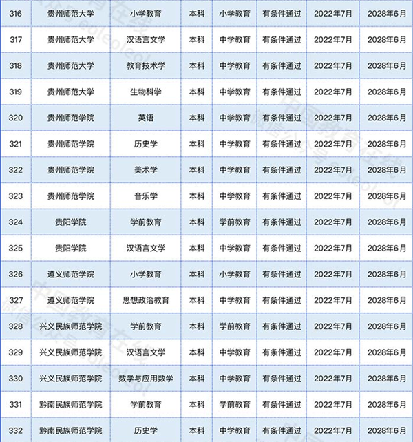 近日,教育部公布2022年通過普通高等學校師范類專業認證專業名單及通過中期審核專業名單。其中,貴州省13所院校29個專業通過師范類專業認證。認證結論有效期六年,自2022年7月起至2028年6月止。