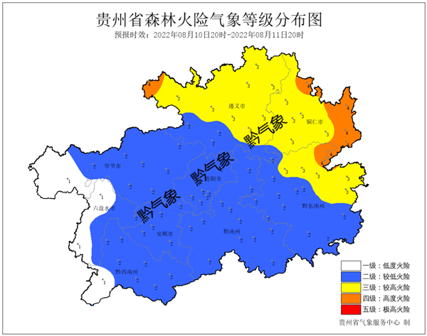 省的東部及赤水河谷地區(qū)森林火險氣象等級為3-4級,