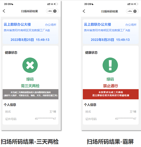 近期,根據疫情防控需要,貴州場所碼新增72小時未完成核酸檢測的重點人員、三天兩檢人員風險提示功能,場所碼顯示結果與健康碼重點人員顏色及管控規則一致。群眾掃場所碼后,顯示綠、黃、紅三種狀態,對應相應的管控措施。