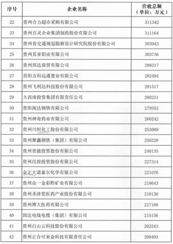 2022貴州民營企業100強榜單