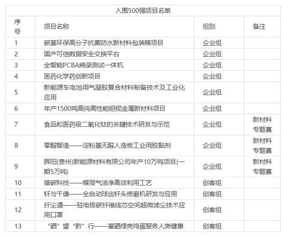 日前,國家工信部中小企業局網站公示了第七屆“創客中國”中小企業創新創業大賽500強名單。貴州省共13個項入選,相比去年增加1個項目。