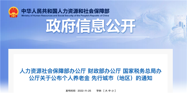 11月25日,人力資源社會保障部宣布,個人養老金制度啟動實施。在北京、上海、廣州、西安、成都等36個先行城市或地區,可通過國家社會保險公共服務平臺、全國人社政務服務平臺、電子社保卡、“掌上12333APP”等全國統一線上服務入口或商業銀行等渠道建立個人養老金賬戶,通過商業銀行開立個人養老金資金賬戶。兩個賬戶開立后,就可向資金賬戶繳費、購買個人養老金產品,年繳納上限12000元,繳費即可享受稅費優惠。可購買包括儲蓄存款、理財產品、商業養老保險和公募基金等,具體金融產品由金融監管部門確定,并將公布產品名單。