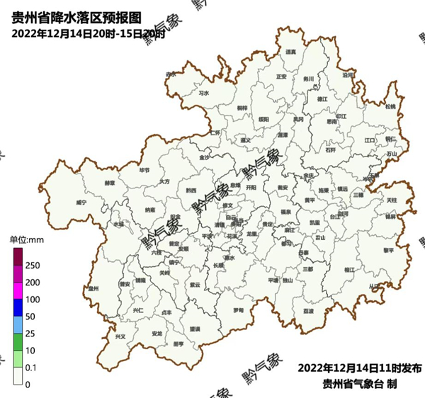 12月15日夜間到16日白天,省的西部和北部地區陰天有小雨,西北部局地有零星凍雨或雨夾雪,地勢高處有雨霧,其余地區陰天間多云,全省大部氣溫下降,16日白天,省的中北部地區氣溫降至0至5℃,其余地區降至5至15℃;