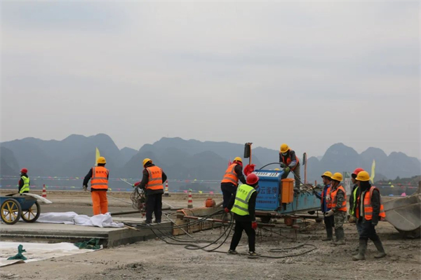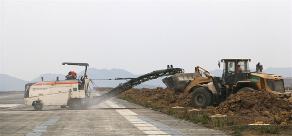 施工人員正在站坪區(qū)域實施道面混凝土及原有跑道瀝青蓋被
