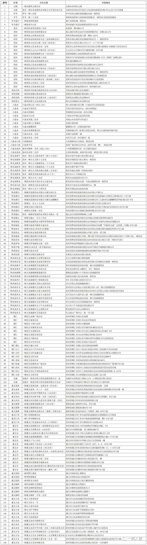 一樹藥業全省148家指定門店(門店信息見下圖)