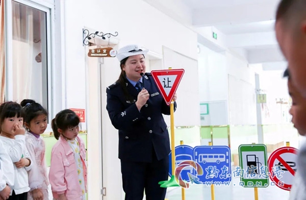 活動中,來自鎮遠縣公安局交警大隊的巾幗志愿者金藝同志通過“自駕出游”的情景模擬,帶領小朋友們認識了常見的交通安全標志。同時,以“過馬路左右看,要走人行斑馬線”、 “紅燈停, 綠燈行, 黃燈閃爍要小心”、“一盔一帶,安全常在”等淺顯易懂的交通安全口號來加深小朋友們的交通安全意識,教育小朋友們乘坐電動車、摩托車時應佩戴安全頭盔;乘坐汽車則應正確使用安全座椅和安全帶,注意不可以將頭或手等身體部位伸出汽車天窗或玻璃窗外玩耍。