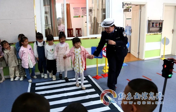 “警察阿姨”告訴小朋友們,要養成良好交通習慣,自覺遵守交通法規,并鼓勵孩子們回家后把今天學到的交通安全知識講給爸爸媽媽聽,一起遵守交通規則,拒絕不文明交通行為。親切、和藹及不斷給予鼓勵和反饋,讓“警察阿姨”的講課精彩不斷,小朋友們都說:好暖心、好喜歡。(龍冠宇)