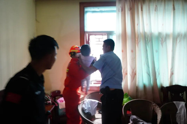 消防救援人員在趕赴現(xiàn)場時,詢問報警人得知,小女孩家長外出買菜,暫時無法聯(lián)系,到達現(xiàn)場后消防救援人員在了解到商品房房門為防盜門且反鎖著,屋內(nèi)除小女孩外并沒有其他人。根據(jù)現(xiàn)場情況,兩歲左右的小女孩獨自站在窗臺,木質(zhì)窗戶并沒有安裝玻璃情況十分危險,隨時都有可能受外界刺激影響,導(dǎo)致墜樓。