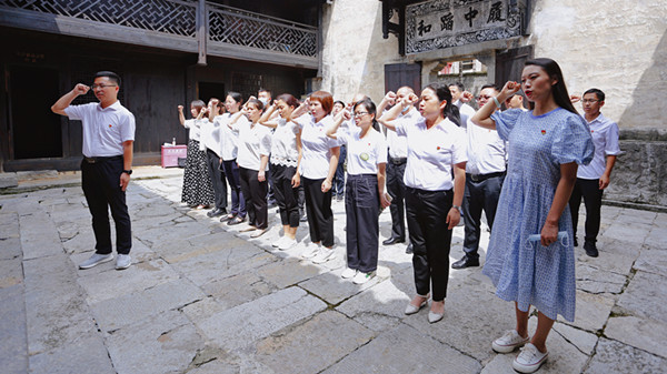 重溫入黨誓詞,回顧初心使命。參觀周達文故居紅色教育基地、和平村愛國主義教育基地,重溫黨史革命情懷;重溫入黨誓詞,高舉右手再次莊嚴宣誓,鏗鏘恢弘的誓詞響徹周達文故居前廳,每一句誓詞,都在幫助每一名黨員回顧入黨時向組織表明的決心與態(tài)度,回顧我們的初心使命,這既是一次深刻的黨性教育,又是一次思想洗禮,更是一次精神激勵。