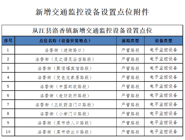 為強(qiáng)化道路交通秩序管理,快速處置交通堵塞和突發(fā)事件、科學(xué)調(diào)配交通信號及違法抓拍、有效管控交通違法行為,預(yù)防和減少道路交通違法行為的發(fā)生,保障人民群眾生命財產(chǎn)安全。經(jīng)請示縣人民政府同意,2023年3月1日起,啟用從江縣洛香鎮(zhèn)新增的電子警察,望廣大機(jī)動車駕駛?cè)俗杂X遵守道路交通安全法律法規(guī),共同促進(jìn)我縣道路交通平安暢通。